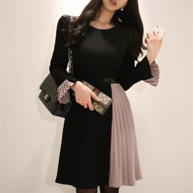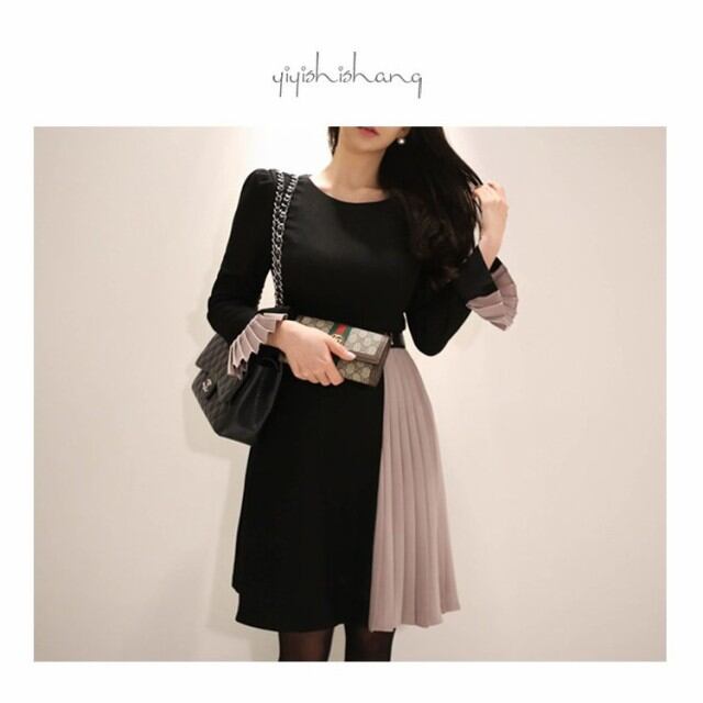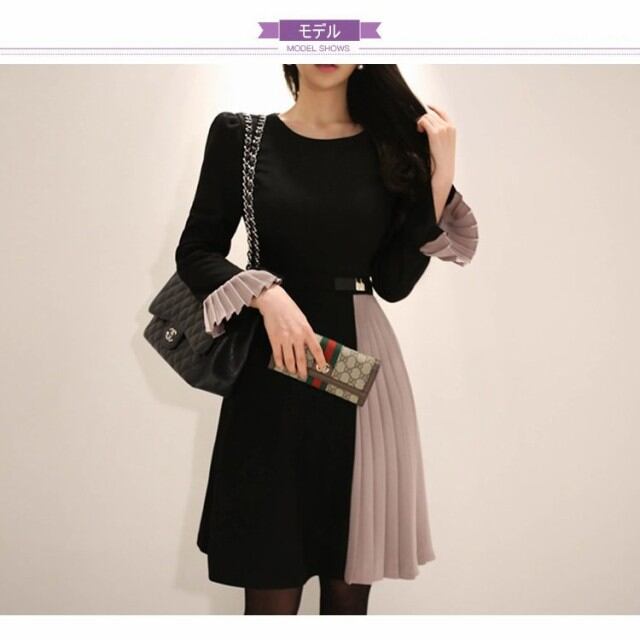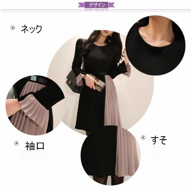 連携キーワード:ワンピース レディース 秋冬 きれいめ 配色 膝丈ワンピース 長袖 プリーツ 切り替えワンピース 上品 Aライン 結婚式ドレス 通勤 OL 大人 着痩せ オシャレ