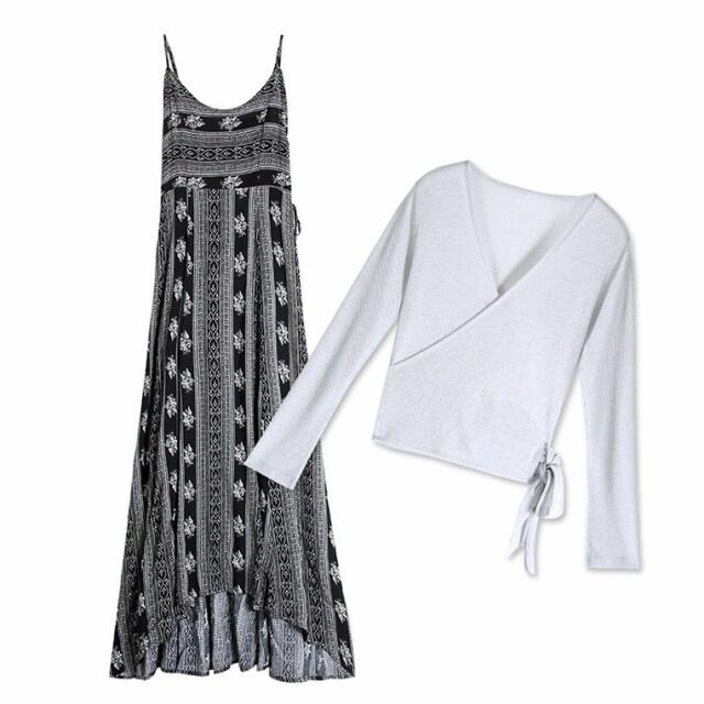 ワンピース レディース 春夏 マキシ丈ワンピース きれいめ ロング丈 2点セット キャミソールワンピー 長袖ガウン UVカット エスニック柄 着痩せ 大人 新作