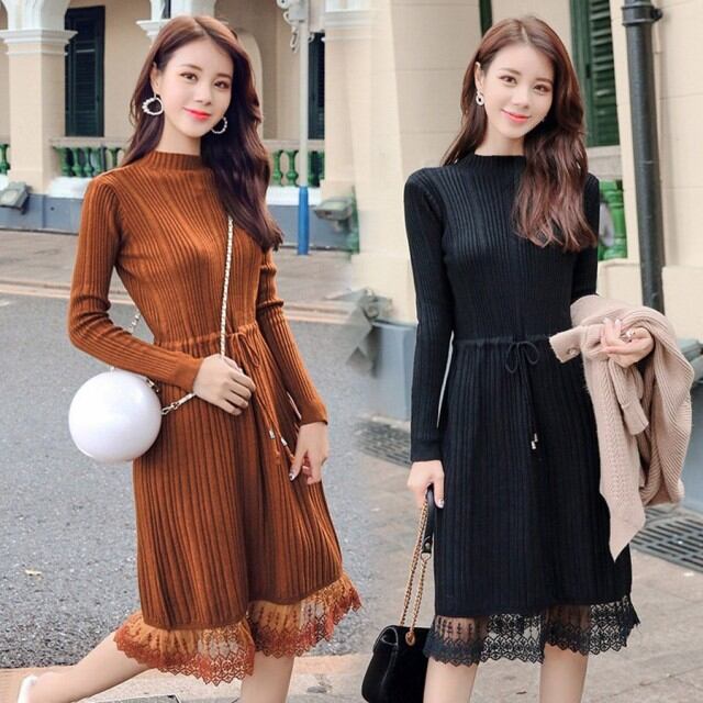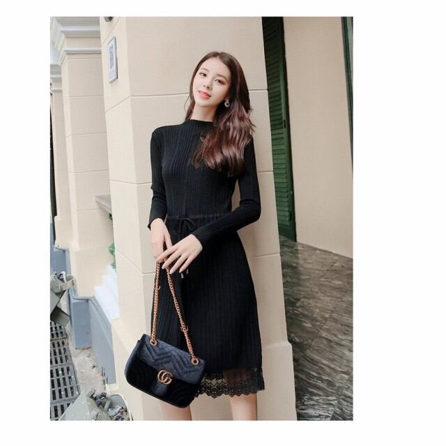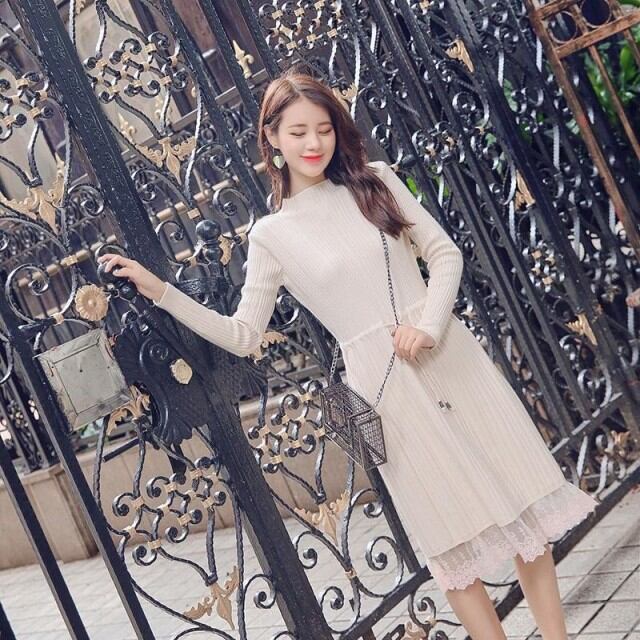 連携キーワード:ニットワンピース レディース 秋冬 膝丈ワンピース きれいめ 長袖 レース切り替えワンピース 無地 ニットセーターワンピ 防寒 大人 上品 オシャレ 3色