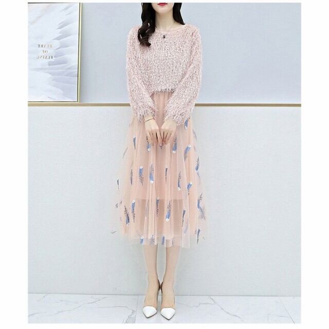 連携キーワード:ワンピースセットアップ レディース 春 長袖ワンピースセットアップ 膝丈チェールスカート きれいめ オシャレ 大人可愛い 着痩せ 新作 結婚式ドレス