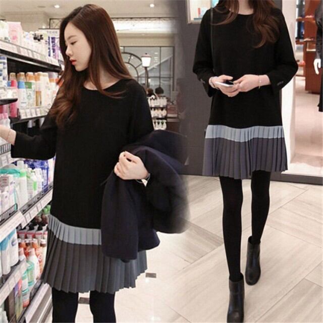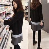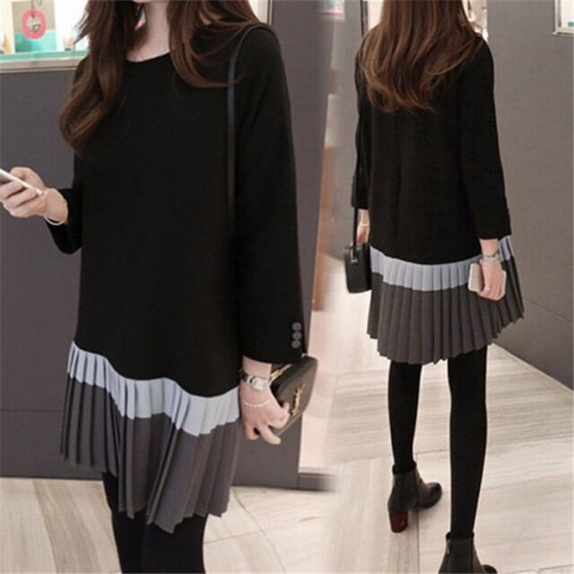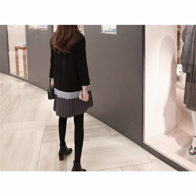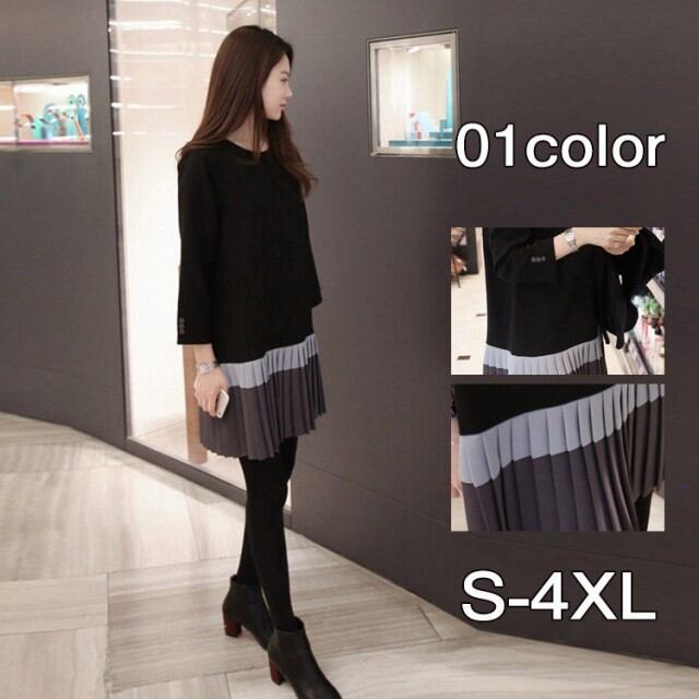 ワンピース 切り替えプリーツワンピース 長袖 Aライン 大きいサイズ 膝丈 着痩せ チュニックワンピース 体型カバー ゆったり カジュアル 春秋 大きいサイズ 通勤