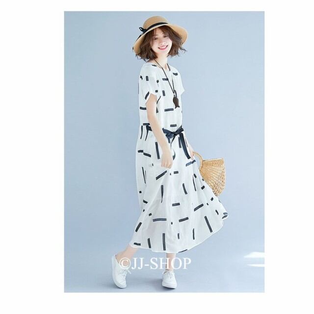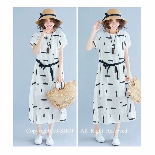ワンピース チュニック レディース マキシワンピ 半袖 体型カバー ゆっとり ロング ミモレ丈 コットン リネン 大きいサイズ 花柄 綿麻混 着痩せ 春夏