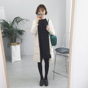 連携キーワード:ワンピース レディース ワンピース 秋 きれいめ膝丈ワンピース 上品 長袖 ドット柄ワンピースチュニック 着痩せ 通勤 結婚式ドレス お出かけ 韓国風