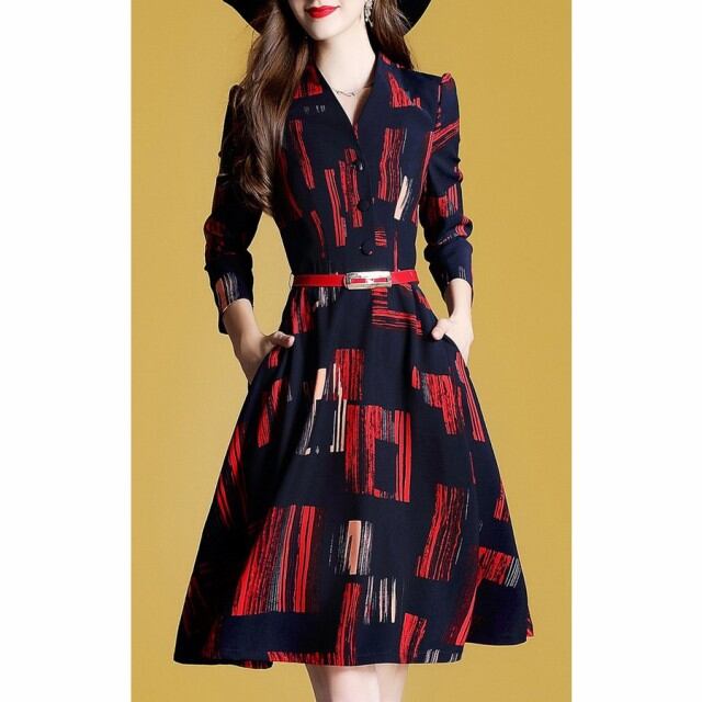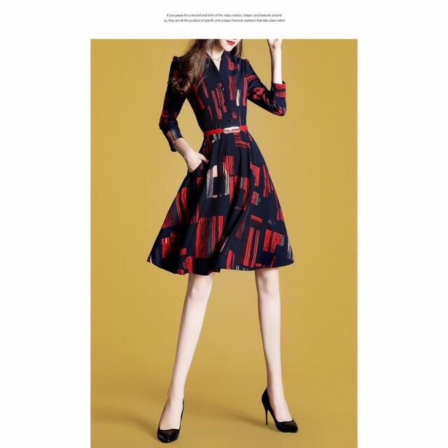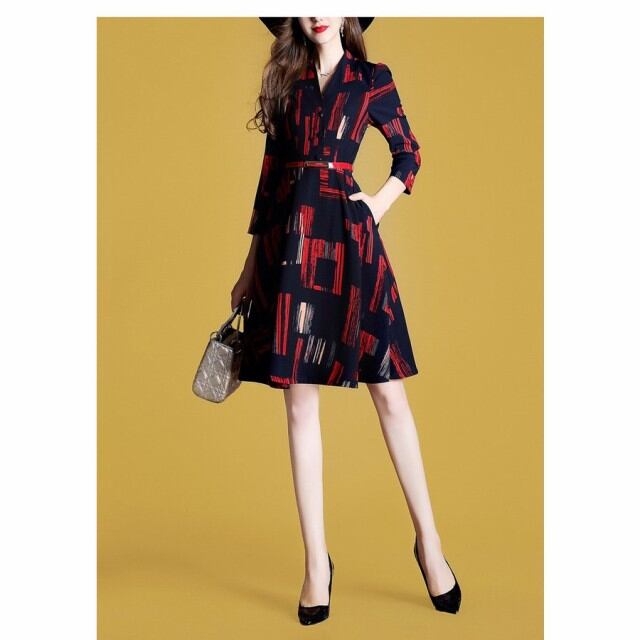 連携キーワード:ワンピース レディース ワンピース 春秋 きれいめ膝丈ワンピース 上品 Aライン 七文袖 Vネックワンピース ベルト付き 着痩せ 通勤 結婚式 お出かけ 大人