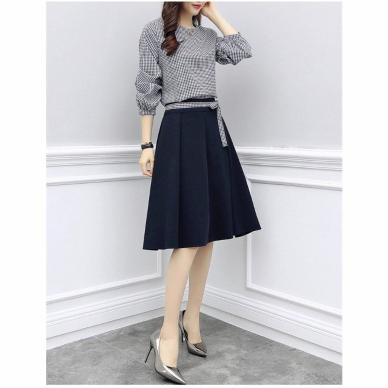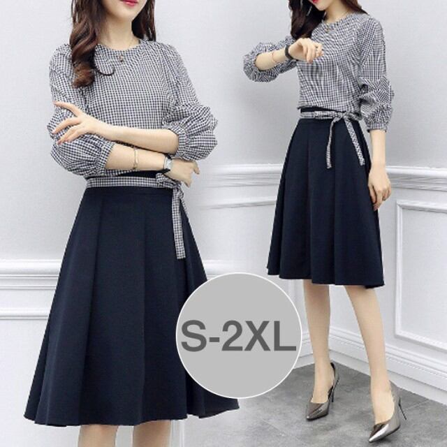 ワンピース レディース 春夏 膝丈ワンピース きれいめ チェック柄 七分袖 2点セット ワンピース セットアップ オシャレ 上品 着痩せ 大人 新作
