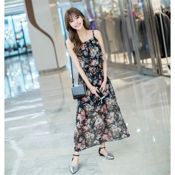ワンピース レディース 夏 ワンピース シフォン 花柄ワンピース キャミ きれいめ 結婚式 ノースリーブ マキシワンピース ブルー オシャレ