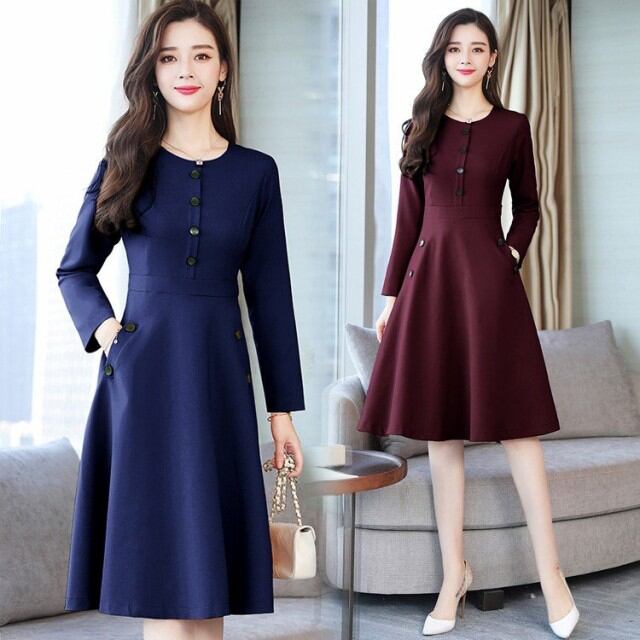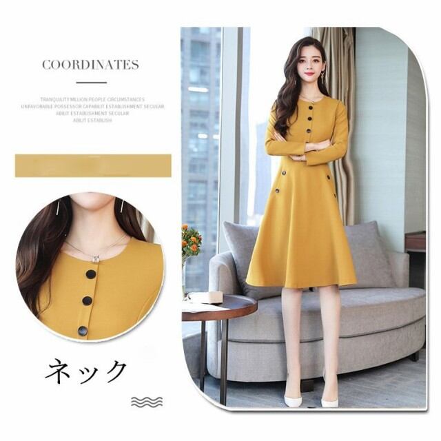 連携キーワード:ワンピース レディース 秋冬 膝丈ワンピース きれいめ 上品 無地 長袖 Aラインワンピース 通勤 着痩せ ロング丈ワンピース 結婚式ドレス オシャレ 4色