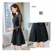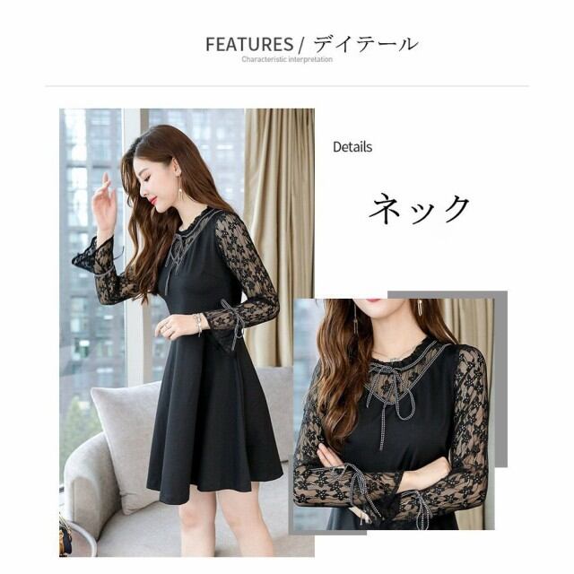 連携キーワード:ワンピース レディース 秋冬 膝丈ワンピース きれいめ 大きいサイズ レース切り替え 長袖ドレス 膝丈ワンピース 結婚式 通勤 オシャレ 着痩せ ショート丈