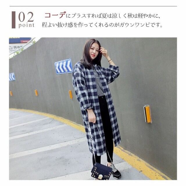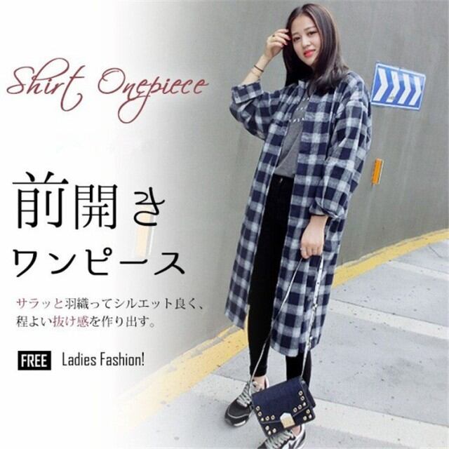 シャツワンピース ロング 春秋 チェック 長袖 ドロップショルダー ゆったり レディース ワンピース カジュアル 襟付き 前開き 羽織もの
