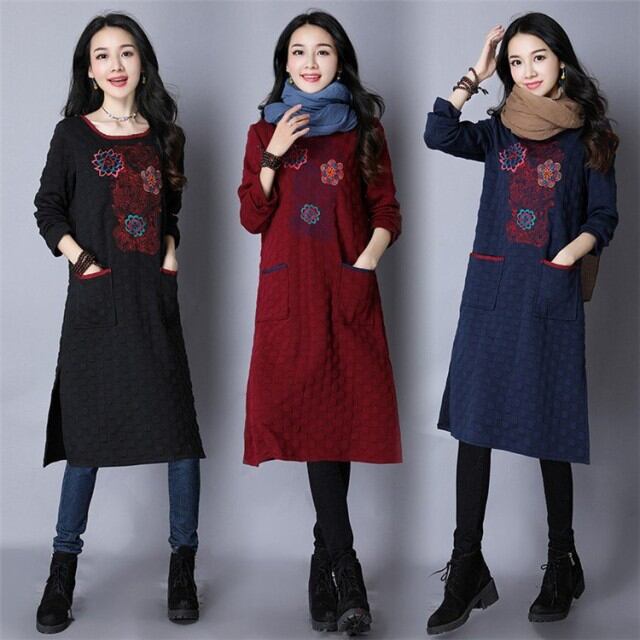 マキシワンピース レディース ワンピース 大きいサイズ チュニック 体型カバー ロングワンピース タートルネック ゆったり 秋 冬 スウェットワンピース 長袖