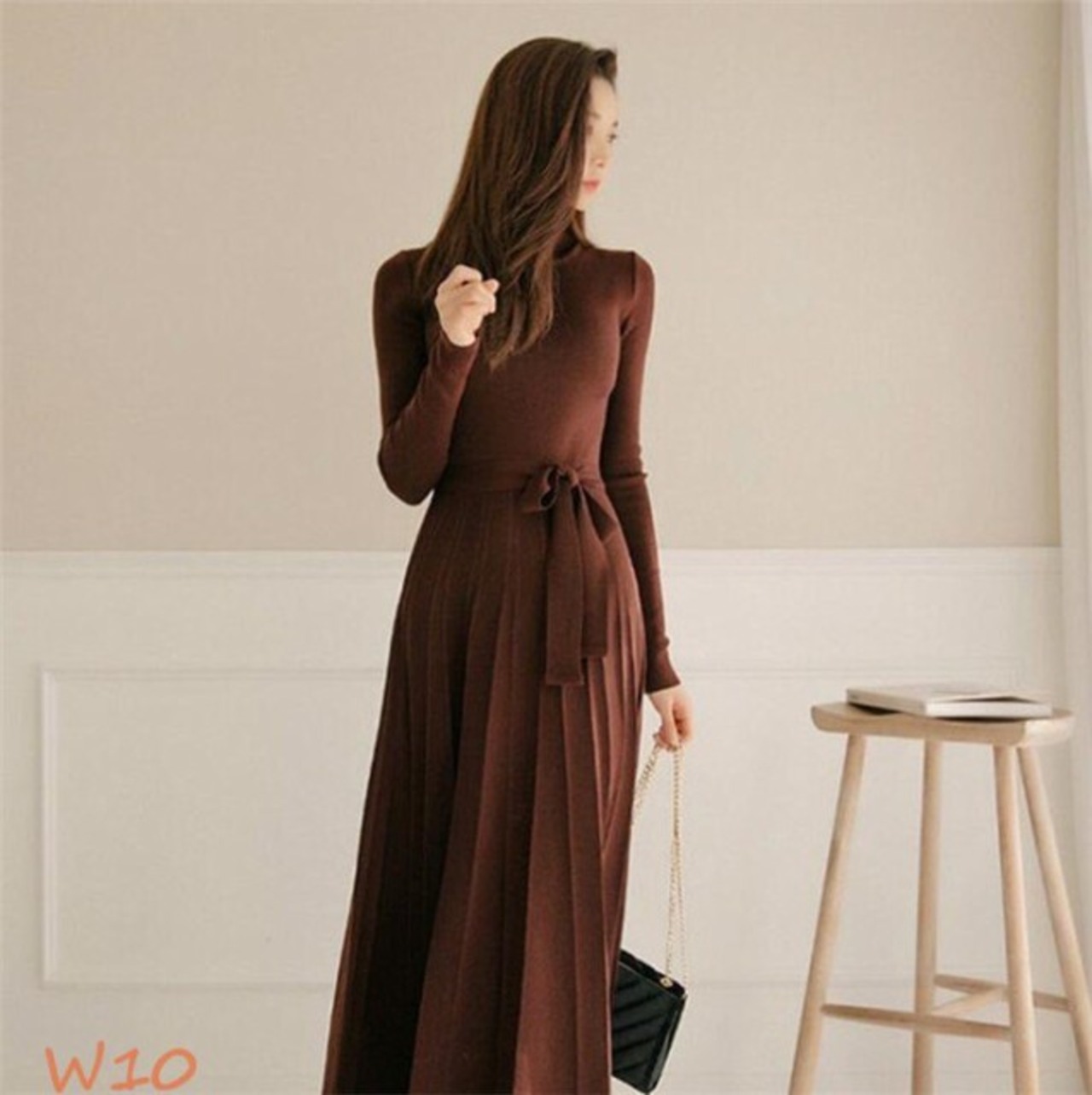 ニットワンピース ロング レディース ハイネック 上品 aラインワンピース ロングニット 冬ワンピース ベルト付き 着痩せ キレイめ ニットソー ロングワンピース