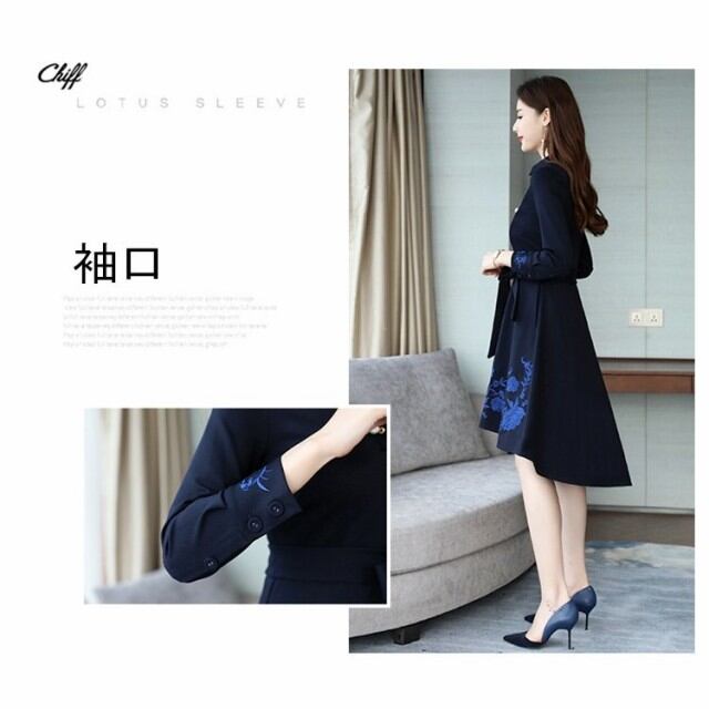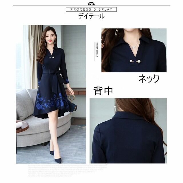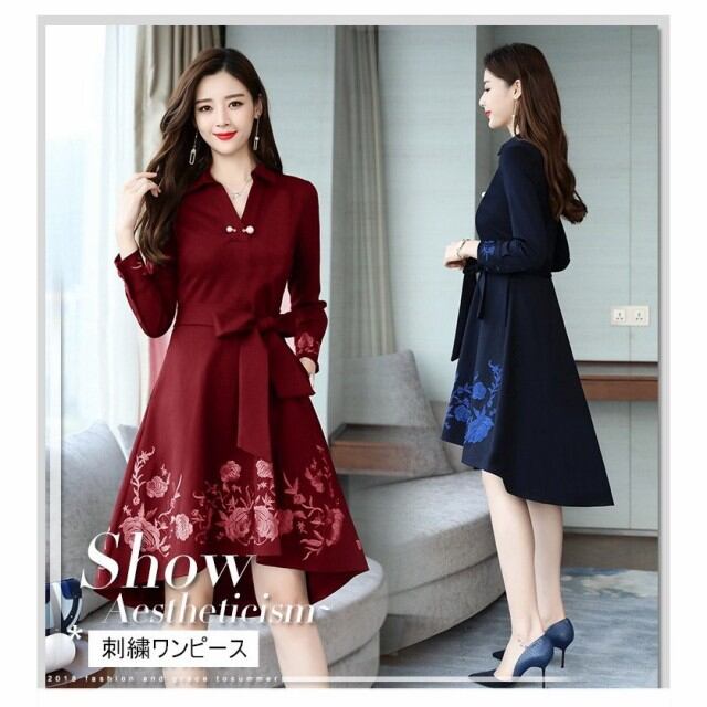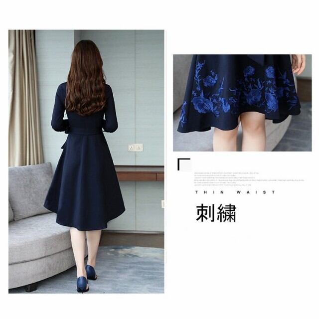連携キーワード:ワンピース レディース 春秋 きれいめ 膝丈ワンピース 花柄 刺繍ドレス 長袖ワンピース 大きいサイズ 結婚式ドレス 通勤 ロング 大人 上品 パーティー 2色