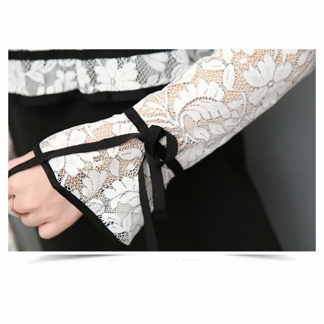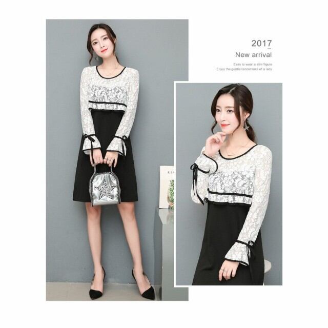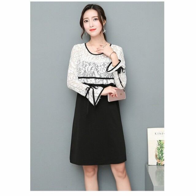 ワンピース 膝丈 結婚式 白黒 レディース ワンピースドレス レース 長袖レースワンピース 春秋 ひざ丈ワンピ 大きいサイズ 女性 大人 オシャレ