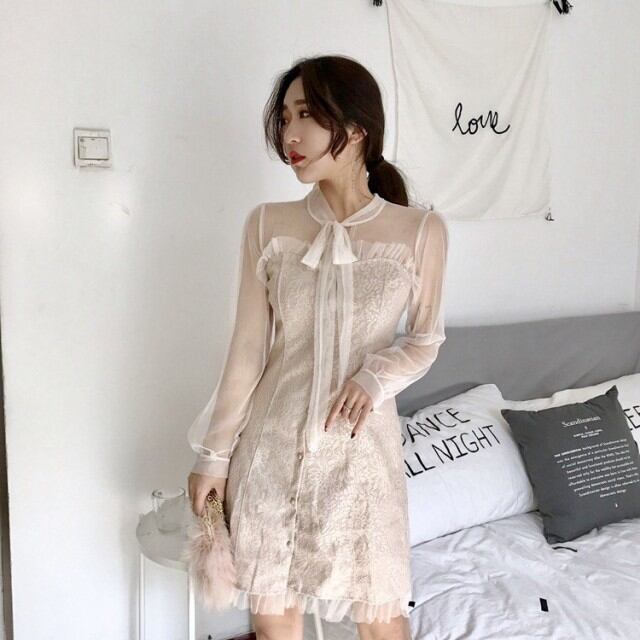 ワンピース 膝丈 結婚式 レディース ワンピースドレス ミニ丈 長袖レースワンピース 秋着 ひざ丈ワンピ ショット丈 女性 大人 オシャレ