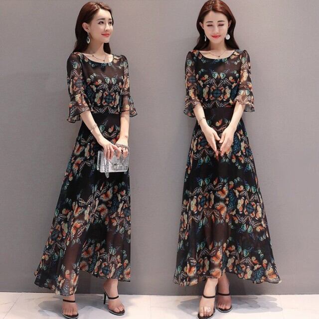 連携キーワード:ワンピース レディース 40代 春夏 マキシ丈ワンピース きれいめ シフォン 五分袖 蝶柄 大きいサイズ ロング丈ワンピース マキシ丈 着痩せ オシャレ 大人 上品 新作 2色