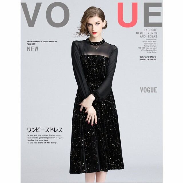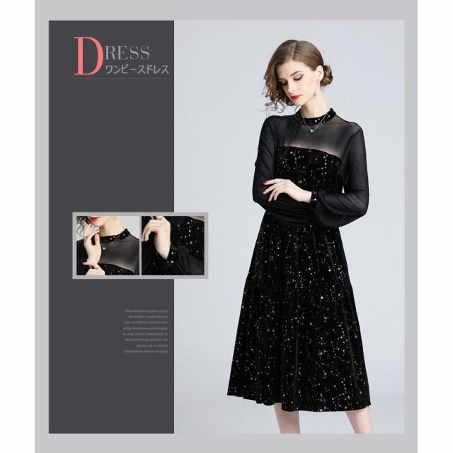 連携キーワード:ワンピース レディース 秋冬 きれいめ マキシ丈ワンピース 星柄 レース切り替えワンピース 長袖 ベルベット 黒 ワンピース 結婚式ドレス 通勤 ロング 着痩せ