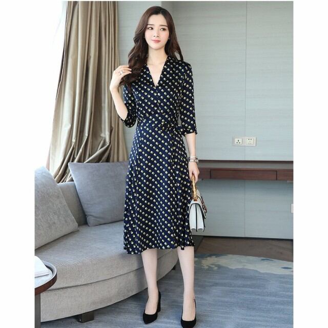 連携キーワード:ワンピース レディース 膝丈ワンピース 春夏 五分袖 vネックワンピース ドット柄 ひざ丈 きれいめ 着痩せ 通勤 OL 結婚式 パーティードレス 大人 上品 新作