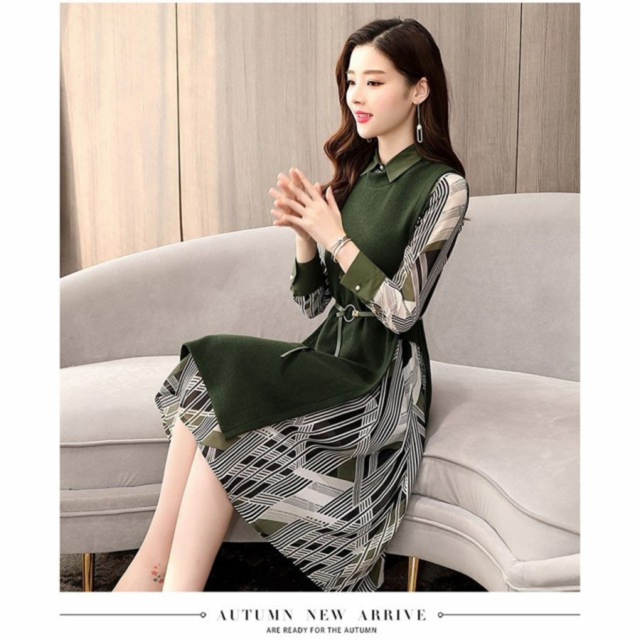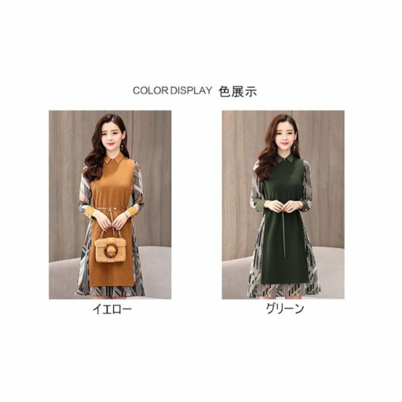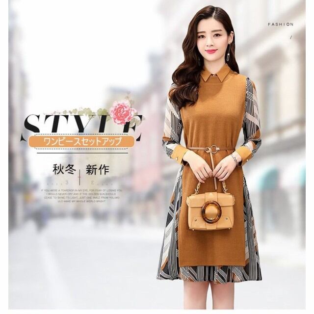 連携キーワード:ワンピース レディース 40代 春秋 きれいめ 膝丈ワンピース セットアップ ニットベスト 長袖 シフォン 幾何柄 シャツワンピース 結婚式ドレス 通勤 着痩せ 2色