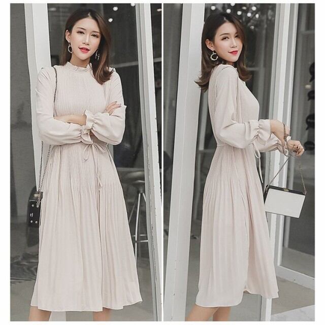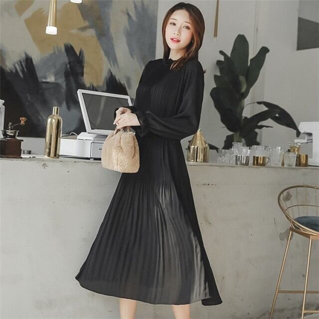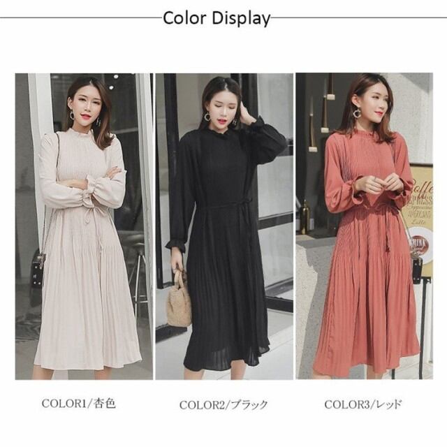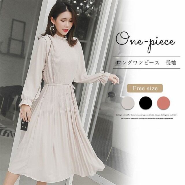 ワンピース レディース きれいめ ロングワンピース 春 長袖 マキシ丈 フォーマルワンピース プリーツ 無地 通勤 オシャレ 着痩せ 30代 40代 50代