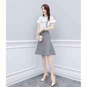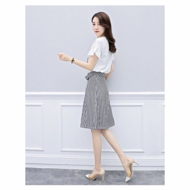 連携キーワード:ワンピース レディース 春夏 膝丈ワンピース きれいめ セットアップ チェック柄 半袖トップス 膝丈スカート 2点セット オシャ 着痩せ 大人可愛い 新作