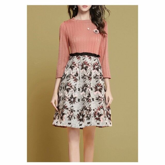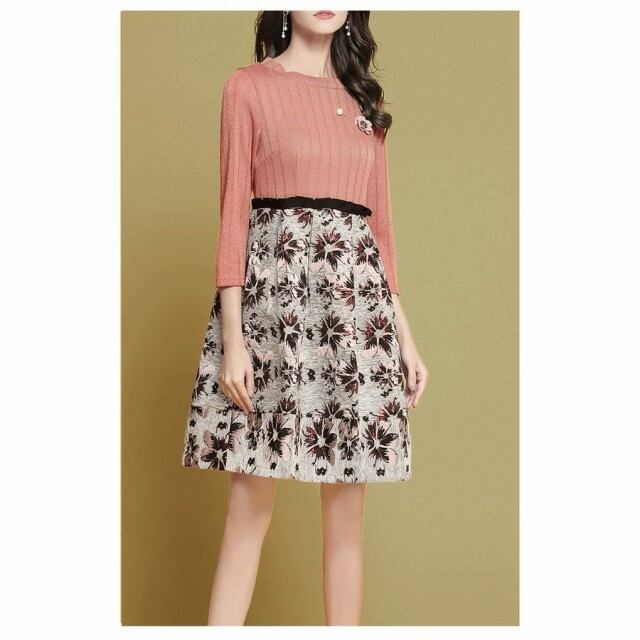 連携キーワード:ワンピース レディース 春秋 きれいめ 膝丈ワンピース 花柄 七分袖ワンピース 結婚式ドレス 通勤 OL 大人可愛い 上品 お出かけ 新作