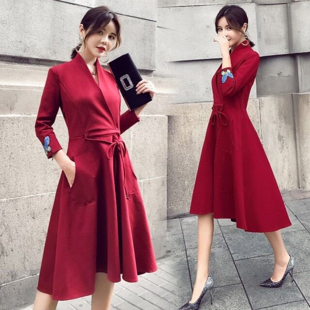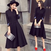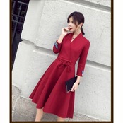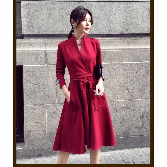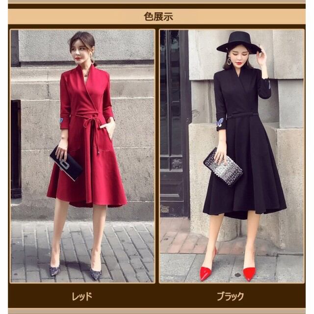 連携キーワード:ワンピース レディース40代 春秋 きれいめ Aライン 膝丈ワンピース 大きいサイズ 上品 七分袖 Vネック リボン 無地 膝丈ワンピース ロング 着痩せ オシャレ 2色