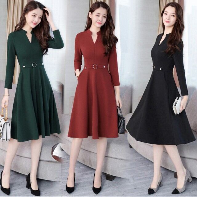 連携キーワード:ワンピース レディース 40代 春秋 膝丈ワンピース きれいめ 長袖 大きいサイズ 膝丈ワンピース Aライン V ネック 無地 着痩せ 通勤 オシャレ 上品 新作 3色