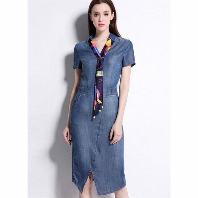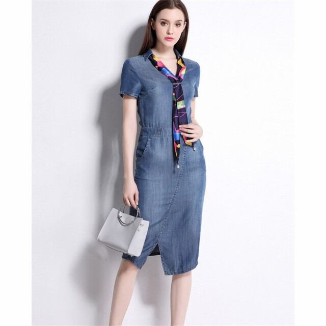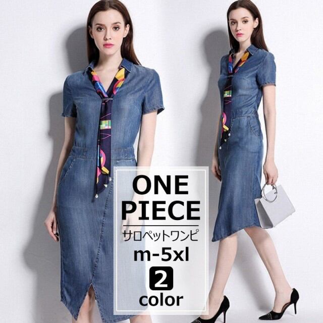 ワンピース レディース デニム 春 夏 膝丈 大きいサイズ 着痩せ デニムワンピース 通勤