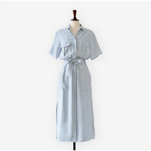ワンピース レディース 春夏 マキシワンピース 半袖 シャツワンピース 大きいサイズ 韓国風 OL 通勤 リボン付き上品 着痩せ 大人 オシャレ 新作