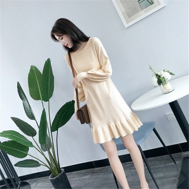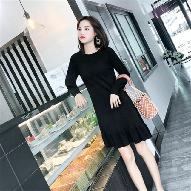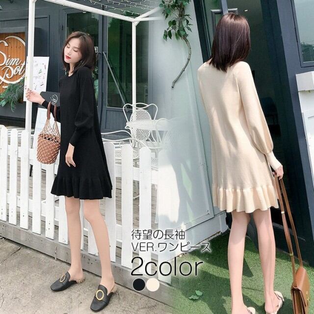 ワンピース レディース ニットソー ロング Uネック 長袖 ウエストベルト サイドスリット シンプル 秋 冬