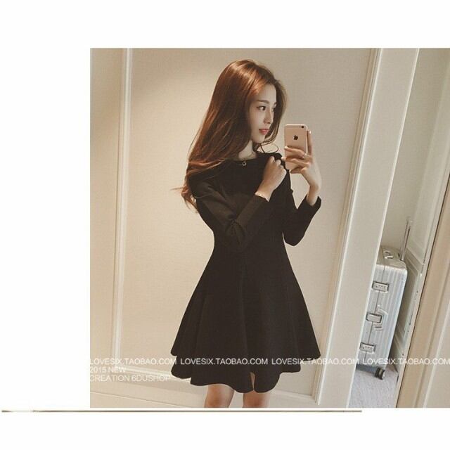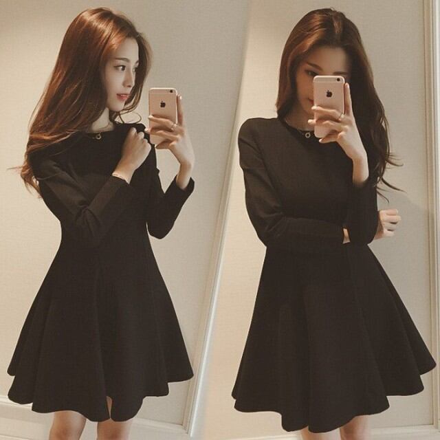 ワンピース ショット丈 長袖 ミニワンピ 黒 ラウンドネックワンピ レディース きれいめ 着痩せ 通勤 OL パーティー ドレス 大人 秋 上品 新作