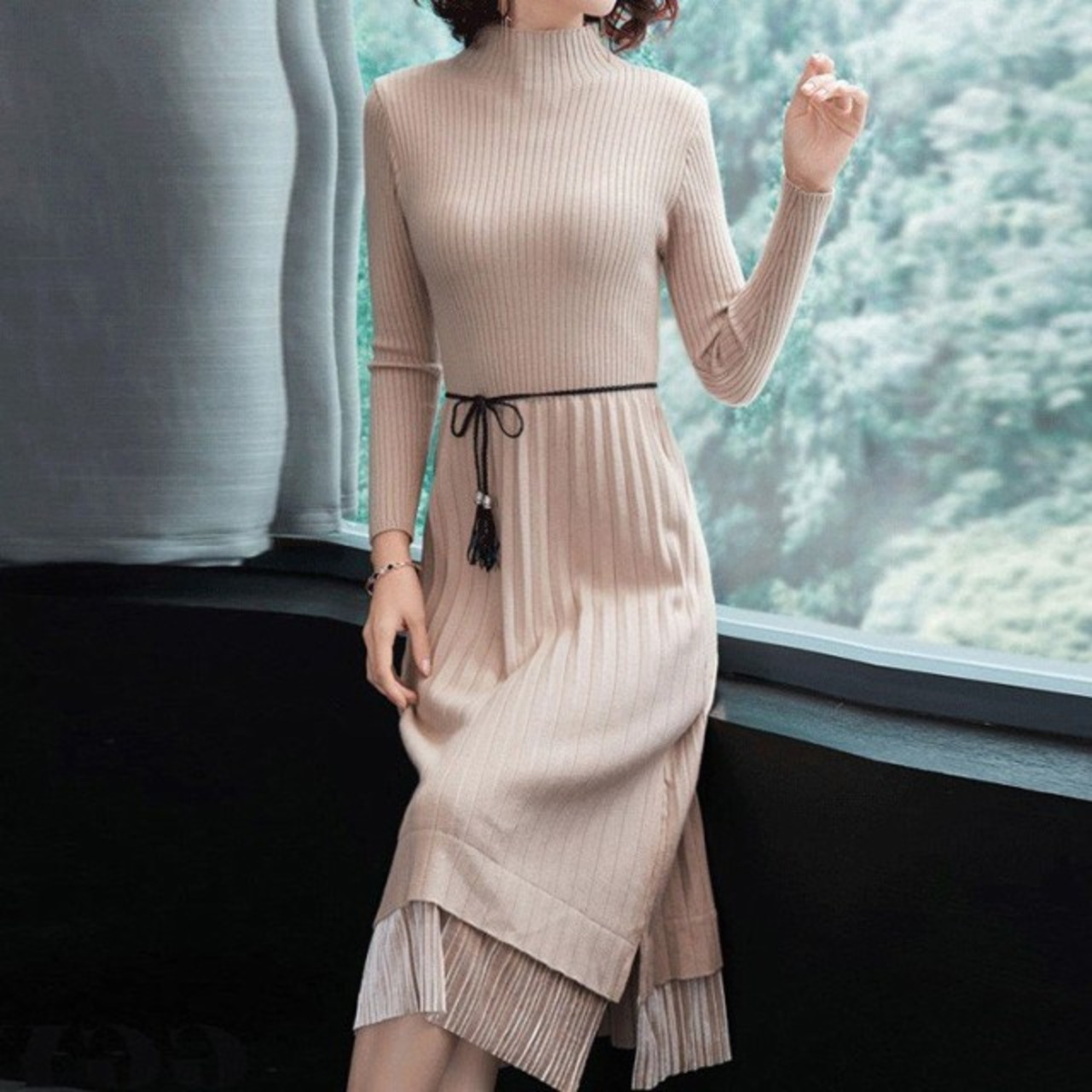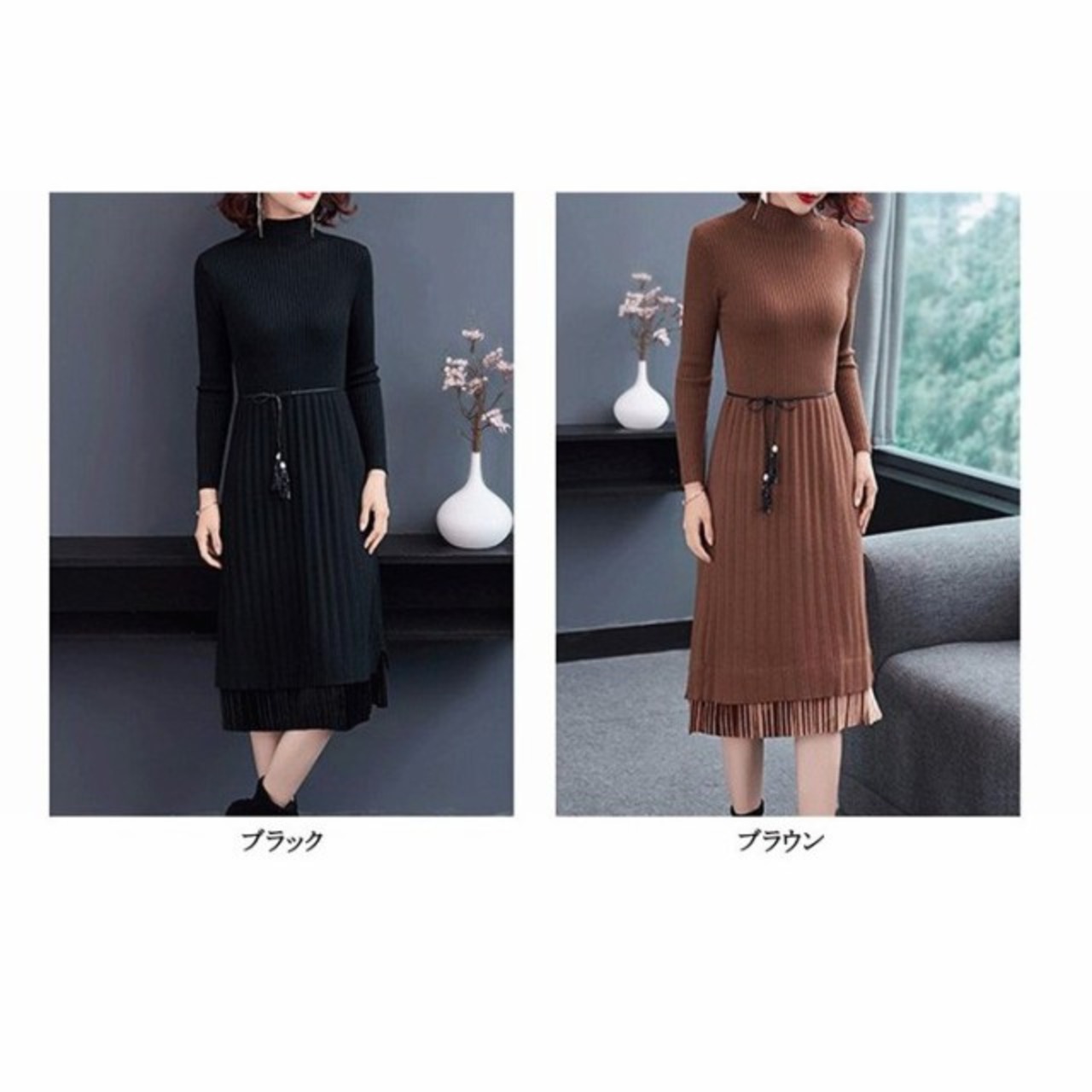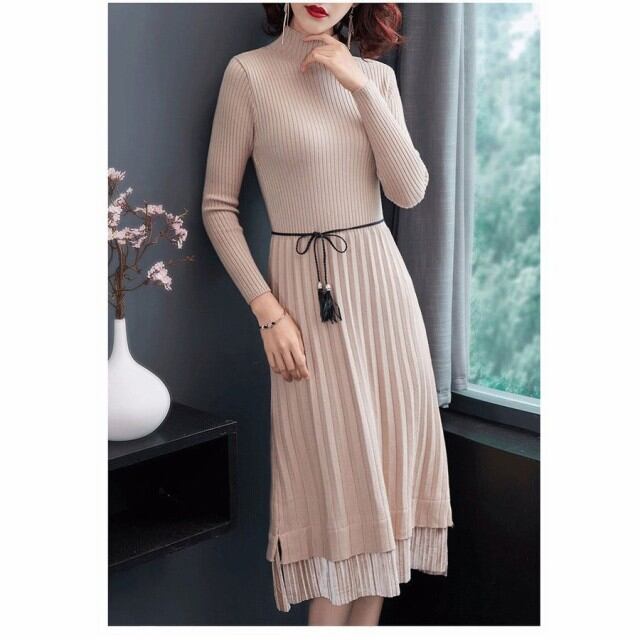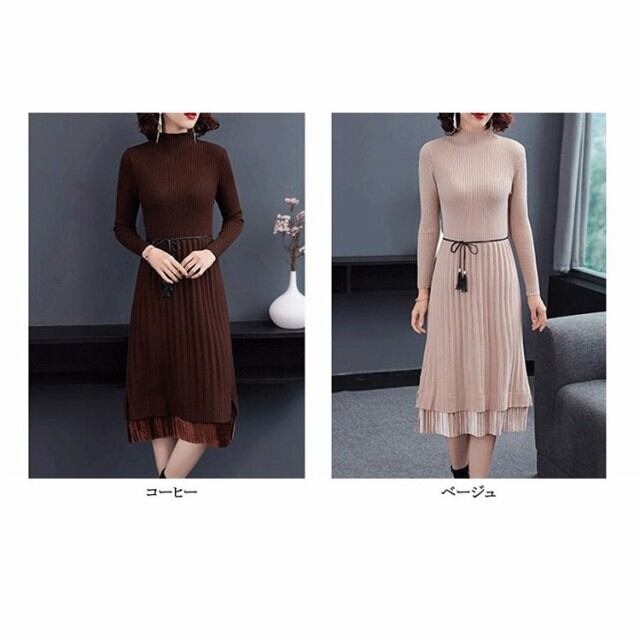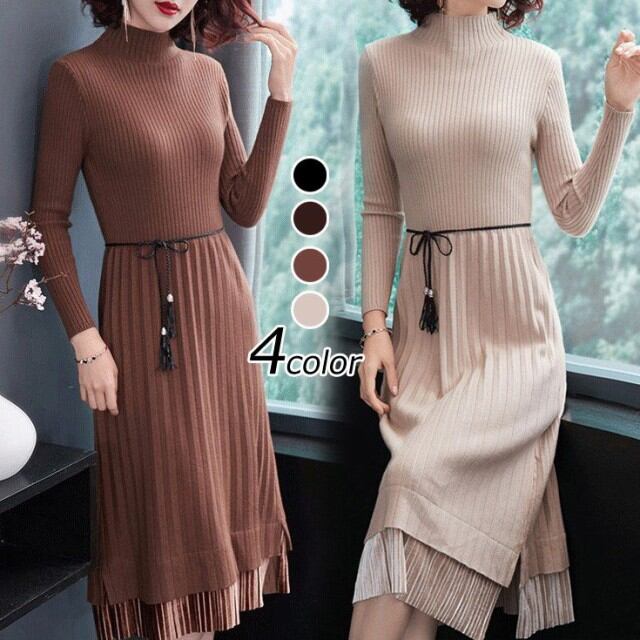 連携キーワード:ニットワンピース レディース 40代 ワンピース 秋冬 きれいめ 切り替えスカート プリーツ ワンピース ロング丈 長袖 ニットワンピ セーター 結婚式 4色