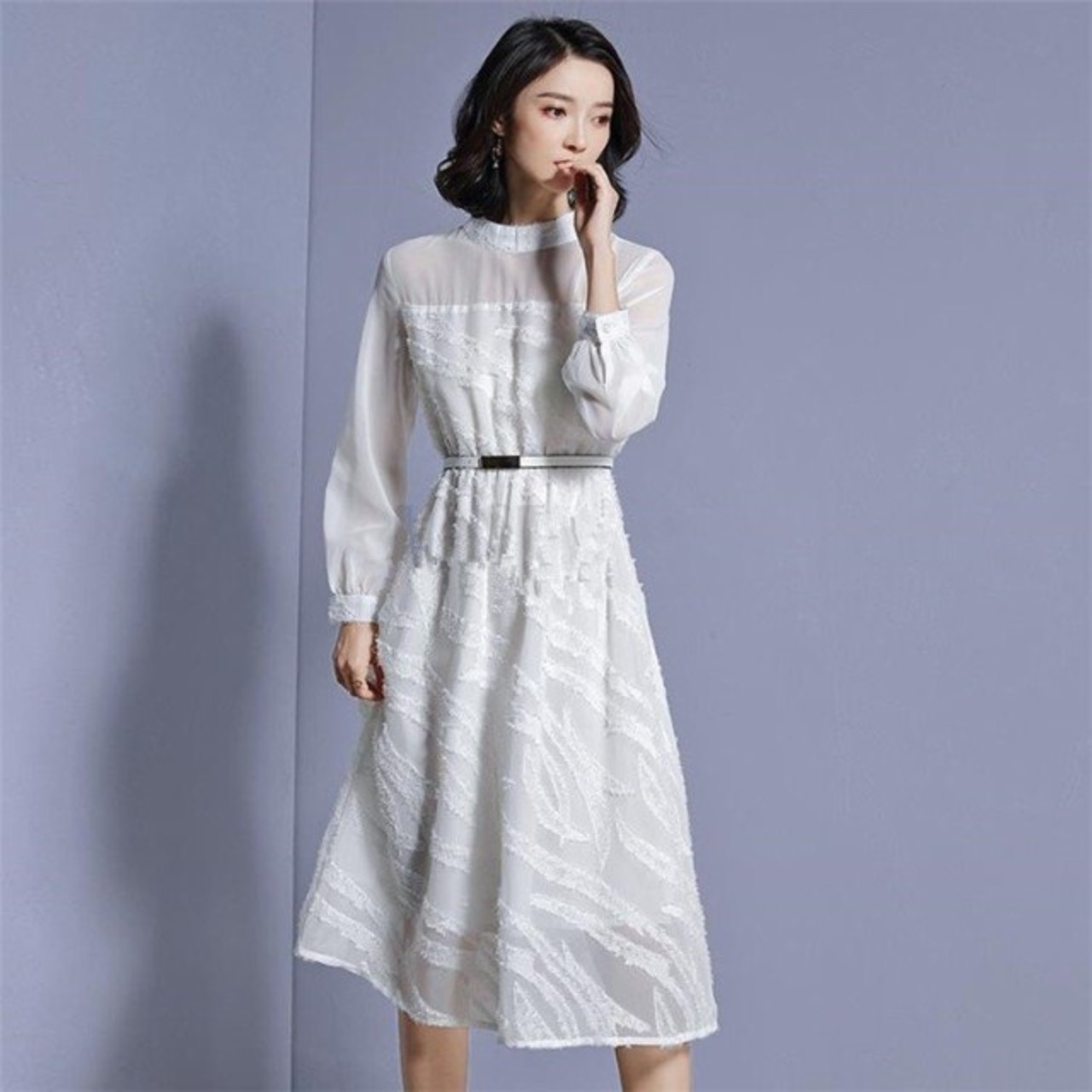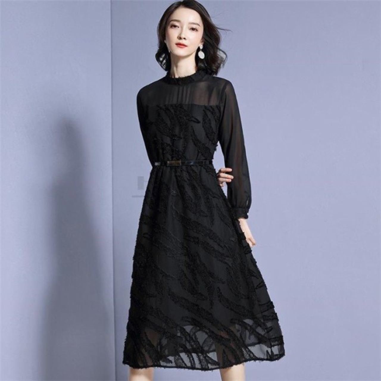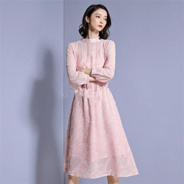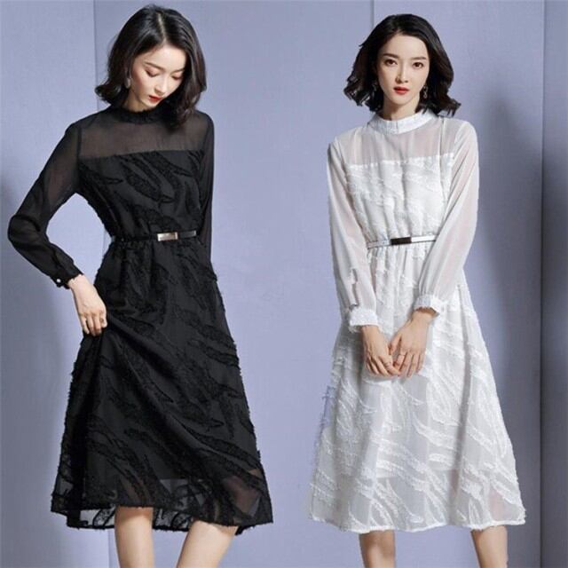 ワンピース レディース ひざ丈 長袖 レース 透け ワンピース 上品 セレブ エレガント 春新作