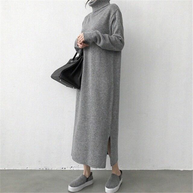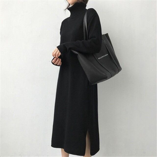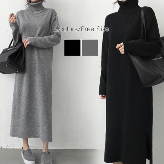 ニットワンピース タートルネック ワンピース レディース ロング マキシワンピース セーター ロング 大きいサイズ ゆったり 無地 秋 冬