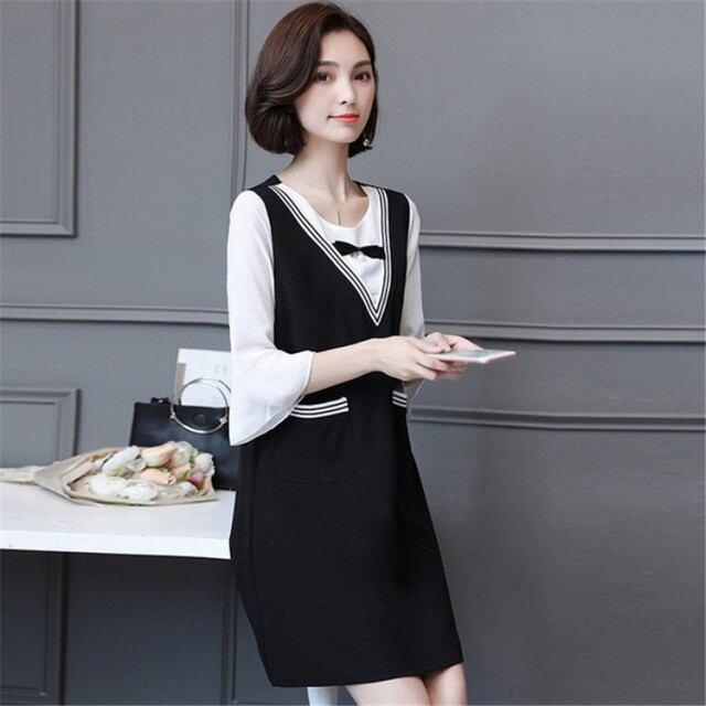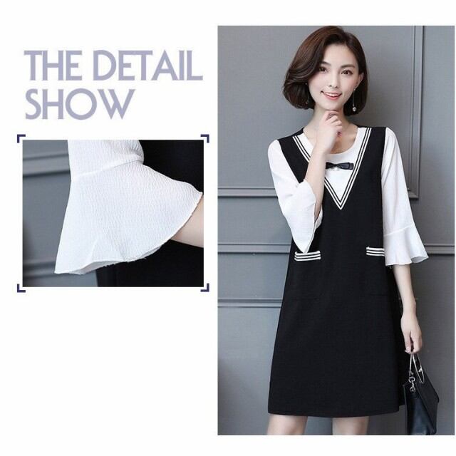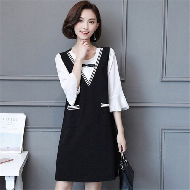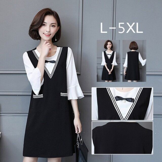 ワンピース レディース きれいめ 膝丈 ドッキングワンピース Aライン ワンピース チェック ボーダー 半袖 五分袖 春夏 夏 ワンピース