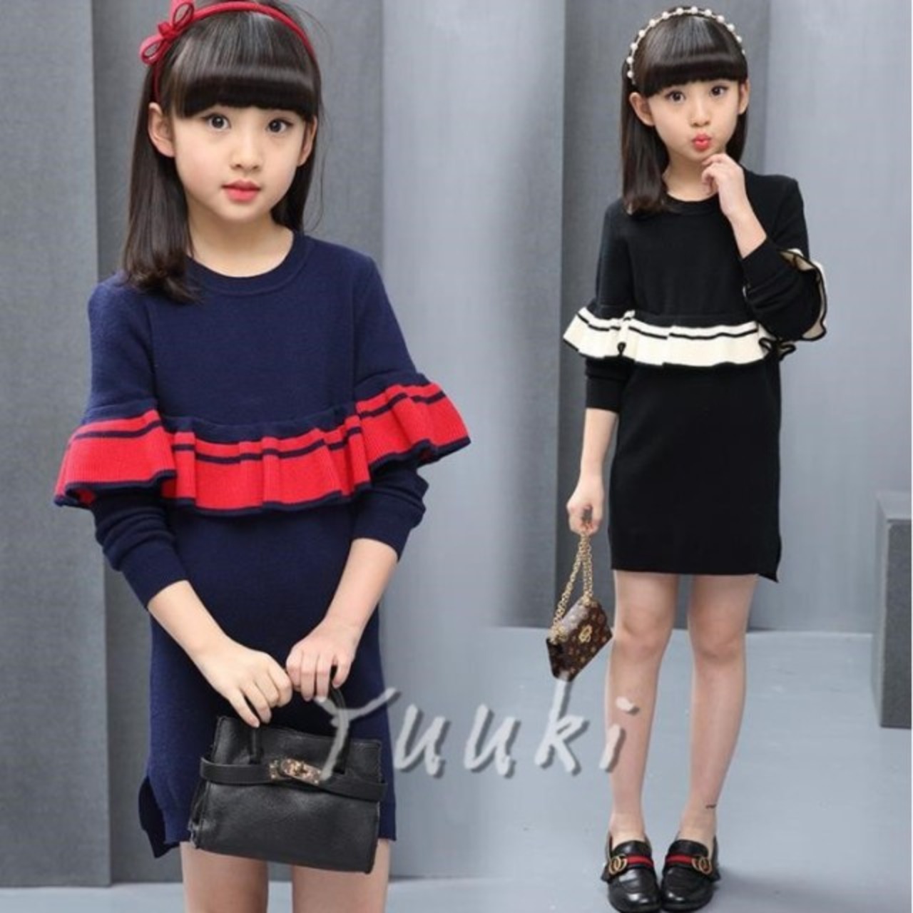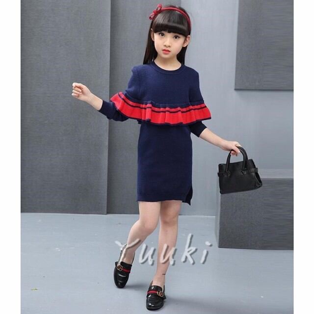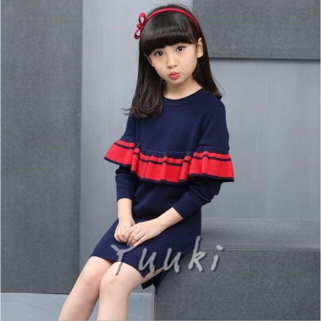 秋冬ニットワンピース 女の子ワンピース キッズ セーター ワンピースドレス 子供ワンピース 発表会//卒園式/入学式/パーティ