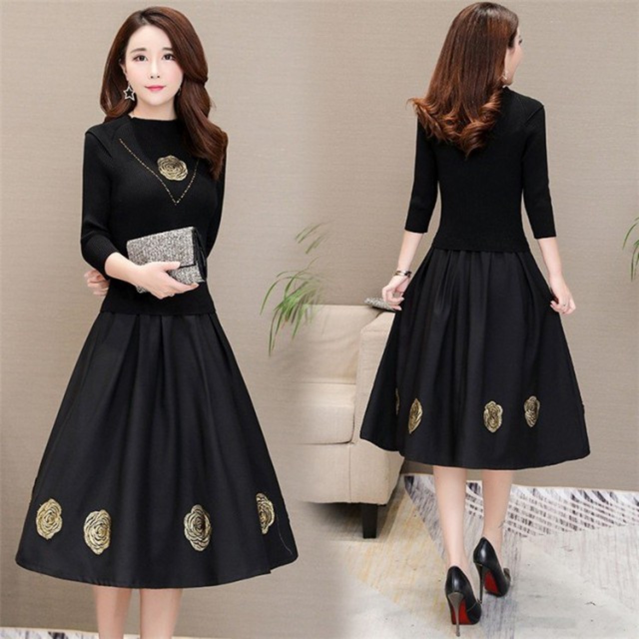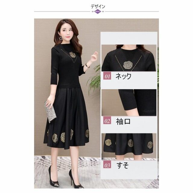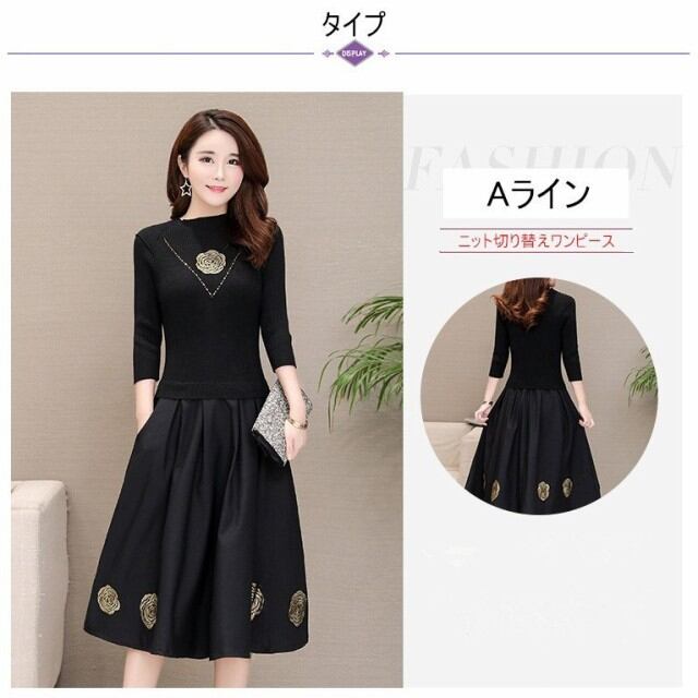 連携キーワード:ワンピース レディース 40代 春秋 きれいめ マキシ丈ワンピース 花柄 長袖 ニット切り替え ワンピース 黒 大きいサイズ 結婚式ドレス 通勤 OL ロング 大人 上品