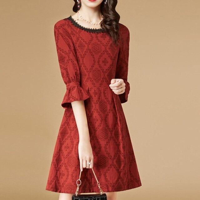 ワンピース レディース 40代 春秋 きれいめ レース 膝丈ワンピース ジャカ一ド 五分袖 ワンピース Aライン 結婚式ドレス 通勤 ショート 大人 上品 お出かけ