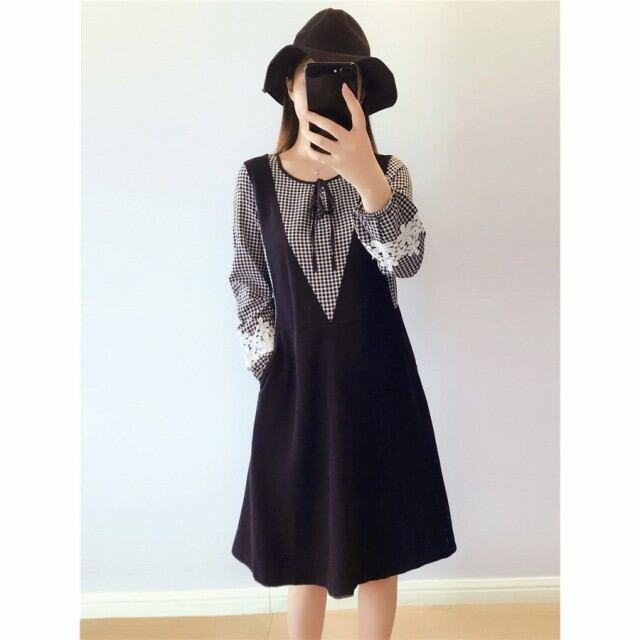 ワンピース レディース スウェットロングワンピース きれいめ ラウンドネック 切り替えワンピ 春 秋 長袖 マキシ丈 大きいサイズ