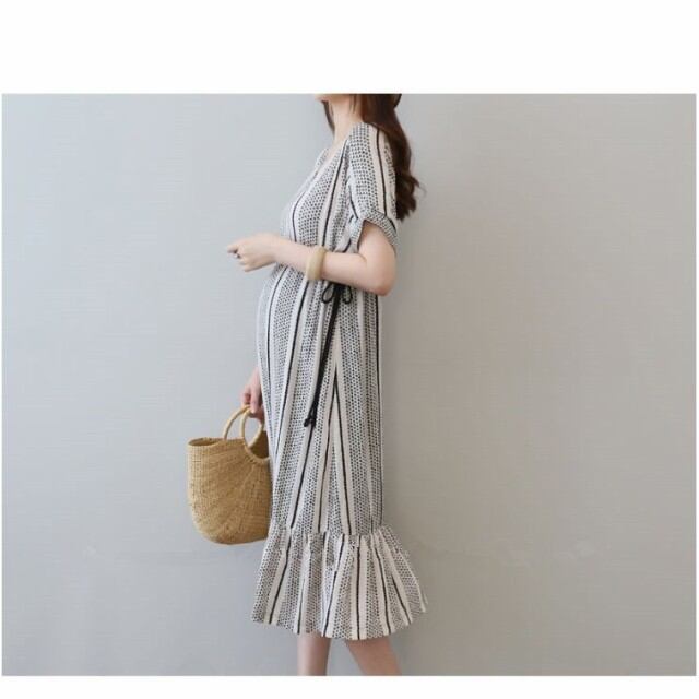 連携キーワード:マタニティー ワンピース 春夏 妊婦服 マタニティー ワンピース 半袖 マキシ丈 綿 ボーダー 上品 マタニティー ドレス 妊婦服 Vネック ゆったり 産前 カジュアル