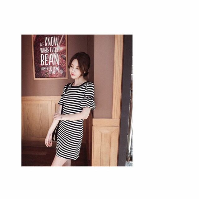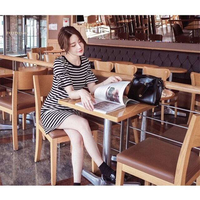連携キーワード:ワンピース ボーダー柄 ワンピース 膝丈 ショット丈 半袖スピーカースリーブ ワンピ レディース 着痩せ 通勤 OL 日常 大人 春夏新作