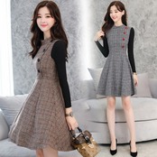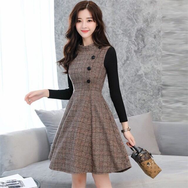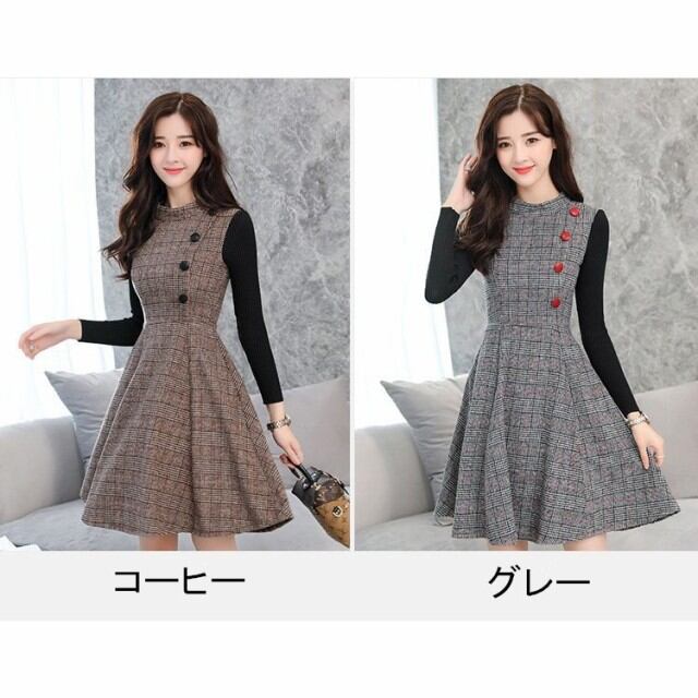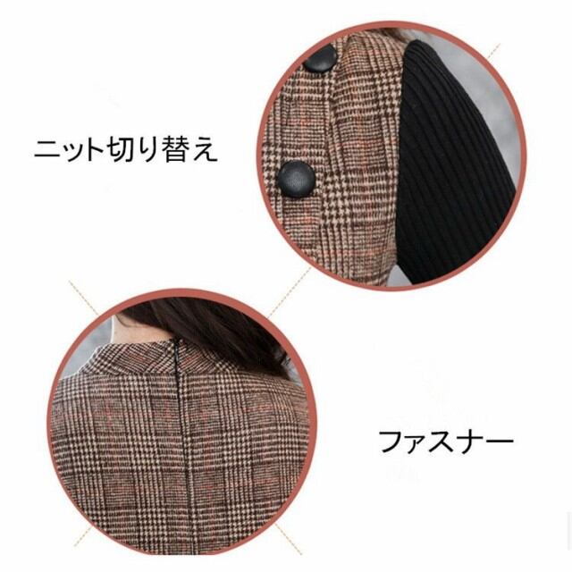 連携キーワード:ワンピース レディース 40代 秋冬 ショート丈 ニット切り替えワンピース きれいめ 上品 チェック柄 長袖ニット ラシャワンピース 通勤 着痩せ 結婚式ドレス 2色