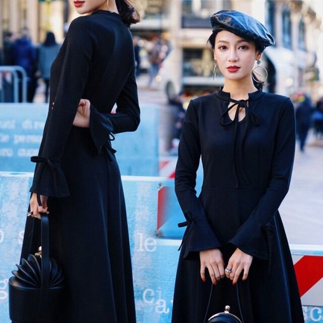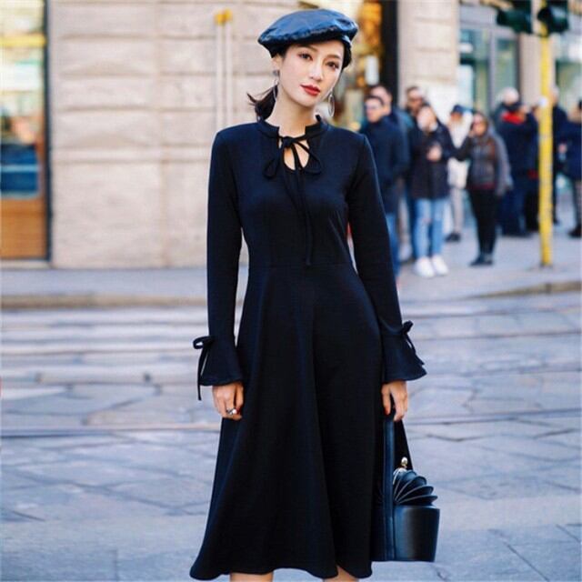 ロングドレス ブラックフォーマル レトロ ベルベット レディース マキシワンピース 長袖 vネック ハイウエスト 大きいサイズ aライン フレア 黒