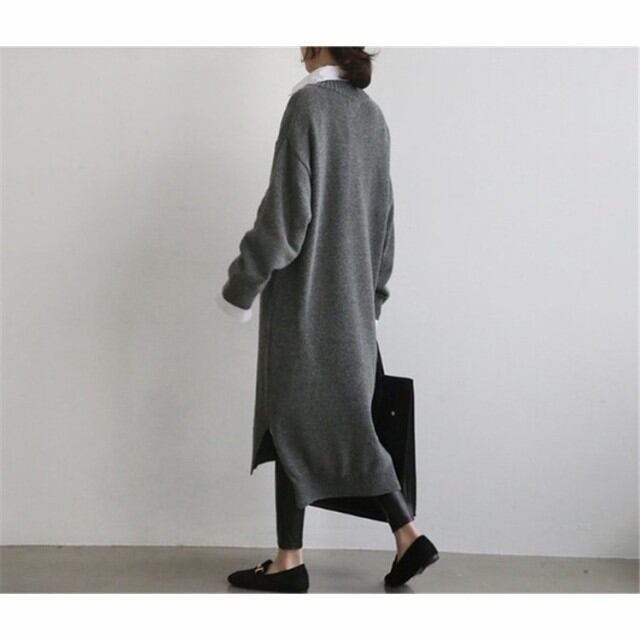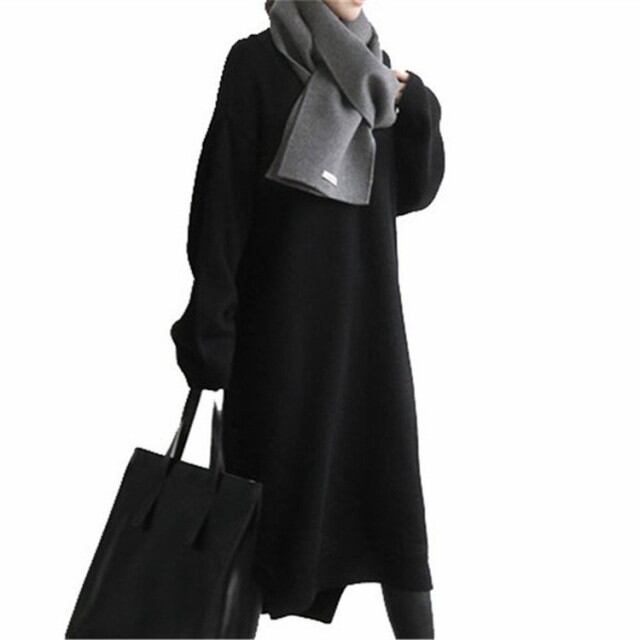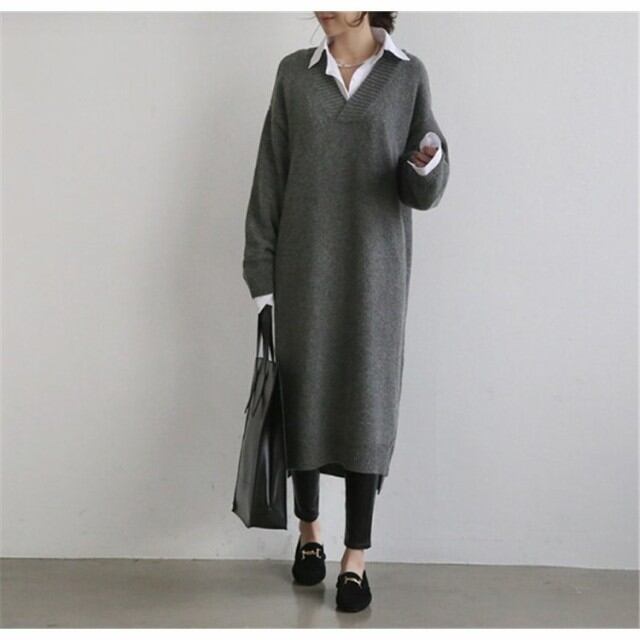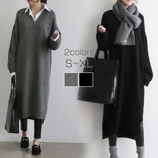 タートルネック ニット レディース ワンピース ニットワンピース Vネック オフタートル ゆったり