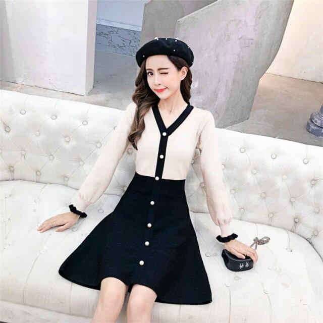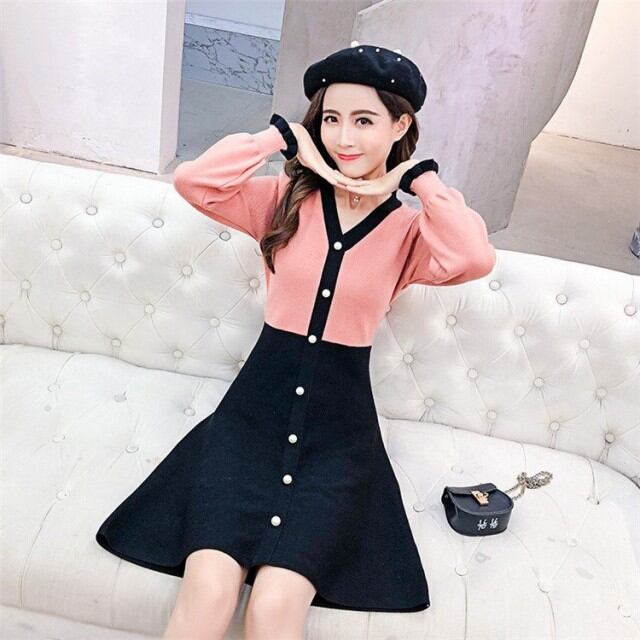 ワンピース 秋冬 きれいめ ニット チュール 切り替え 上下セット風 ロング ミモレ丈 長袖 ケーブル編み レディース ニットワンピース aライン