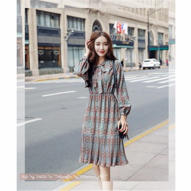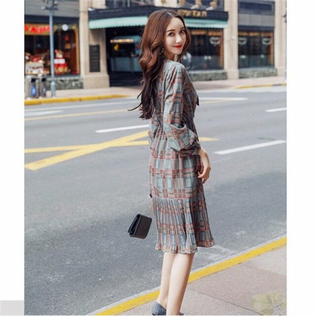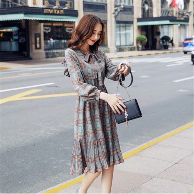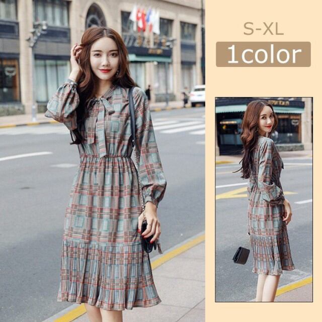 ワンピース レディース 40代 秋冬 膝丈ワンピース きれいめ 上品 チェック柄 長袖 膝丈ワンピース リボン 通勤 着痩せ ロング丈ワンピース オシャレ 大人