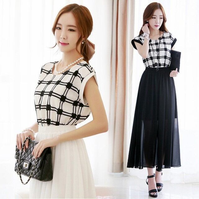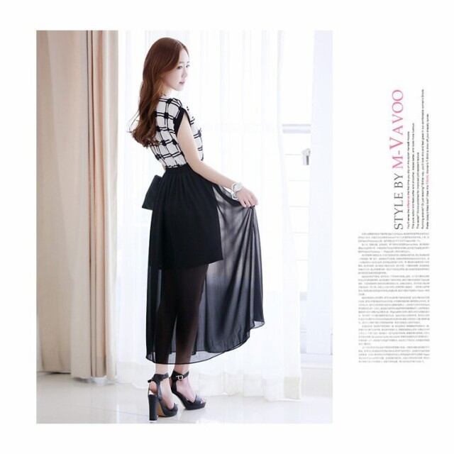 【カラー】:ボーダー+黒スカート、ボーダー+白スカート、チェック+黒スカート、チェック+白スカート