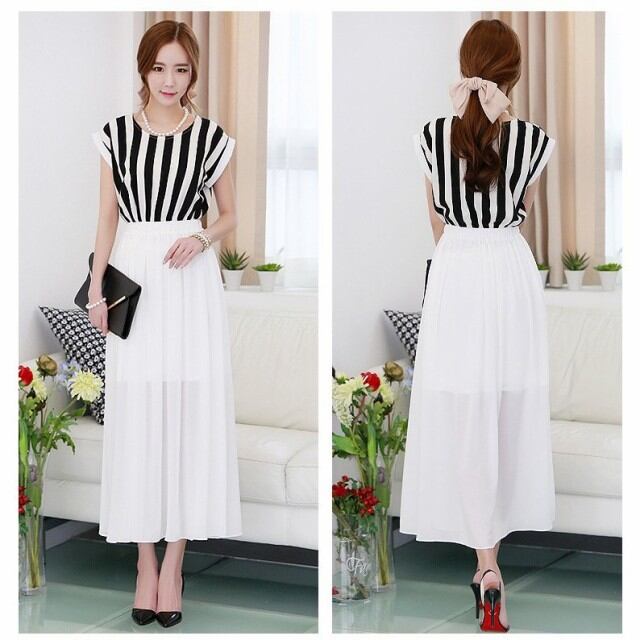 マキシワンピース レディース 春夏 ワンピース シフォンドレス 半袖 ロングスカート黒白ボーダー マキシワンピース オシャレ 上品 4色 大きいサイズ