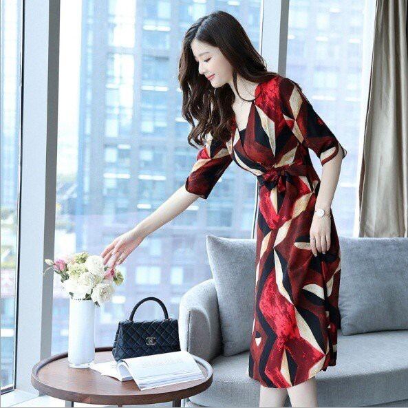 ワンピース 膝丈 春夏 七分袖 膝丈ワンピース レディース キレイめ ワンピース V襟 マキシワンピ 大きいサイズ 体型カバー 通勤 オシャレ 2色