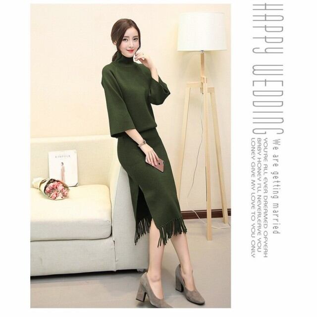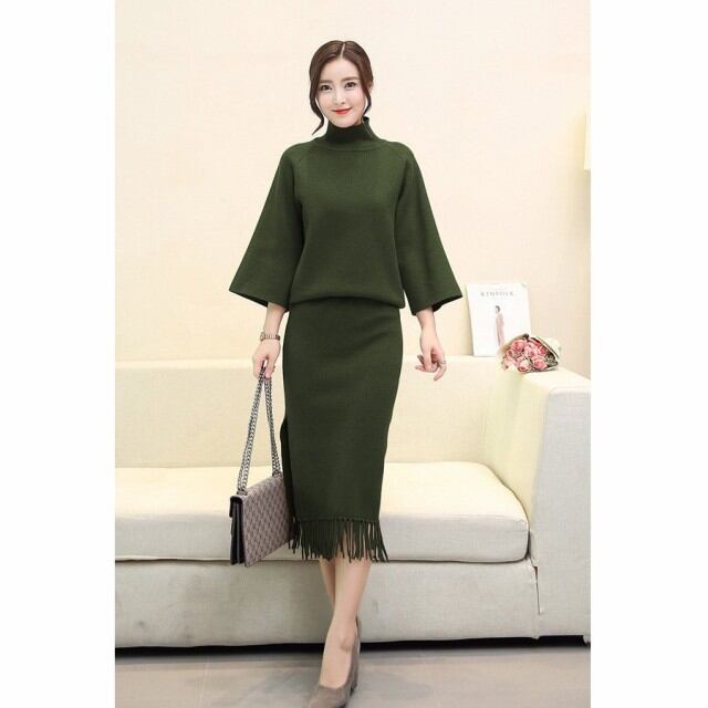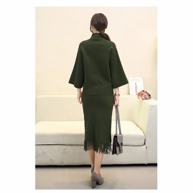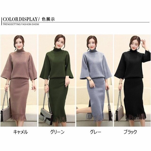 連携キーワード:ニットワンピース レディース セットアップ 秋冬 膝丈ワンピース きれいめ 無地 七分袖トップス 膝丈スカート セットアップ 通勤 上品 オシャレ 着痩せ 4色
